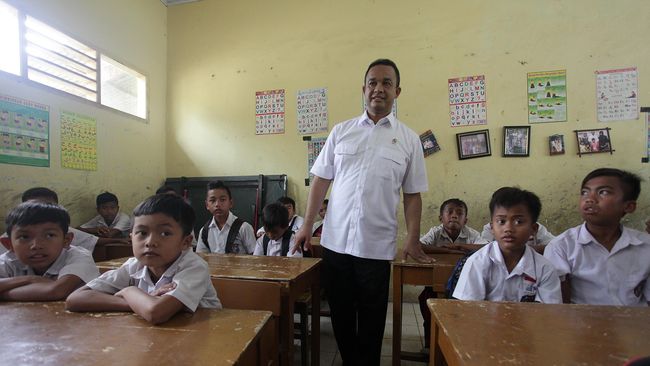 Menteri Pendidikan dan Kebudayaan Anies Baswedan meninjau kelas SDN 1 Pajagan di Lebak, Banten, Senin (16/3). (ANTARA FOTO/Muhammad Adimaja)